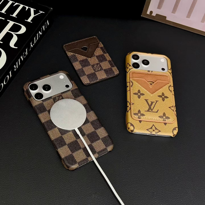 高級感あふれるデザインと実用性を兼ね備えた、ヴィトン風マグネットカードホルダー付きiPhoneケース。
