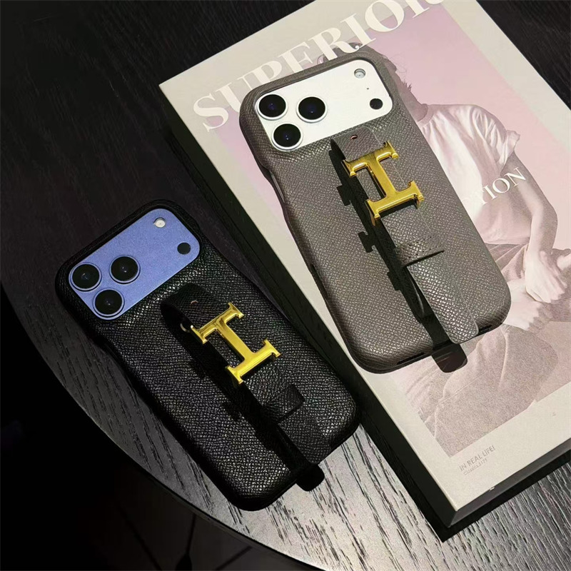 手元から溢れる高級感。エルメル風バンド付きのIPhoneケース。