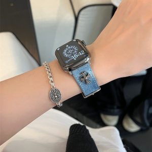 クロムハーツ風デニム素材のapple watch バンド。上質なデニム素材にCHROME HEARTSのアイコニックなロゴをチャームであしらい、実用のうえに格好良くて上品に見えます。幅広い手首周りのサイズに対応、腕元に華やかさをプラスします。4色厳選で、アップルウォッチを愛用している方へのプレゼントにも喜ばれるアイテムです。