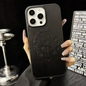 クロムハーツロゴを型押しされたiPhoneケース。